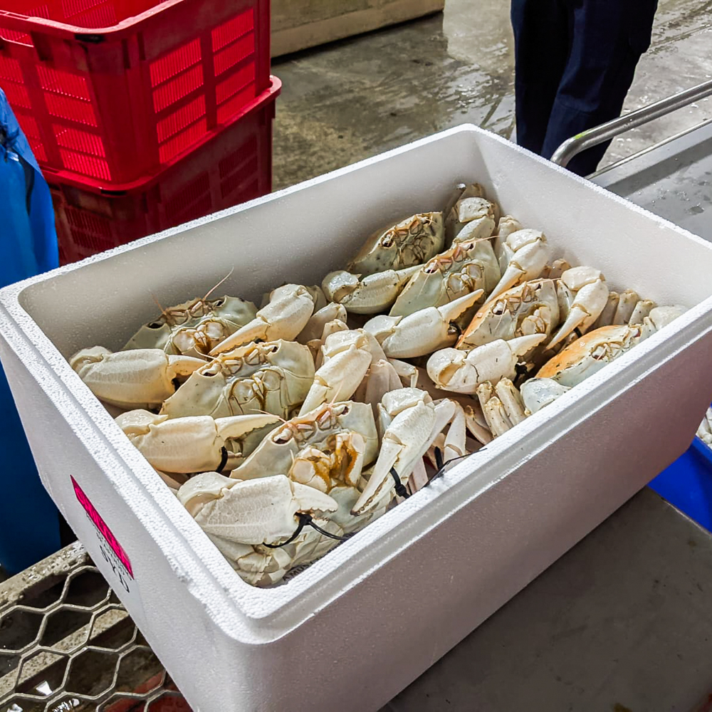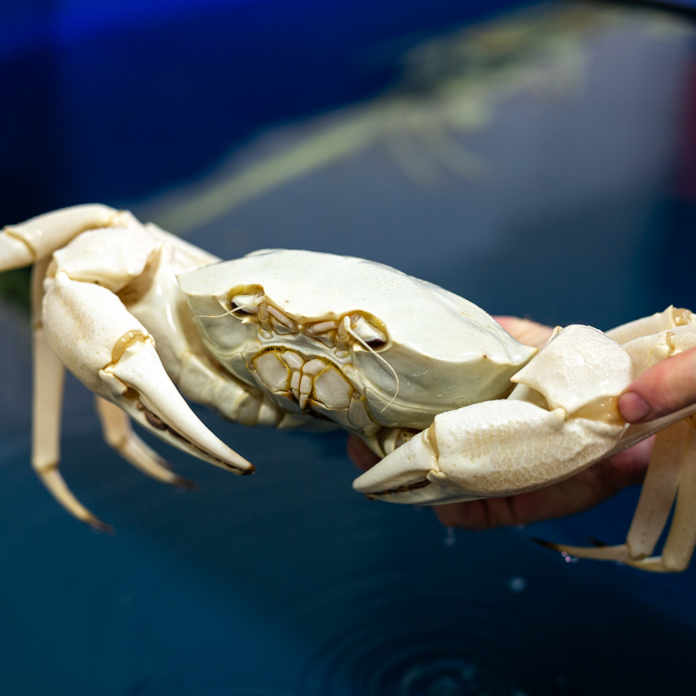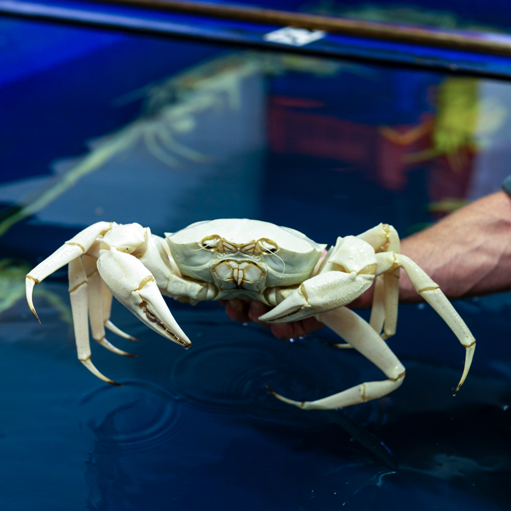 Our pot-caught crystal crabs are promptly transported live to our facility in Fremantle, Western Australia, where they are graded by size and carefully staged in monitored, flowing saltwater tanks.